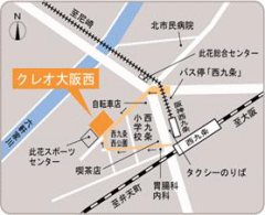 | クレオ大阪西 大阪市此花区西九条6丁目1番20号 TEL 06-6460-7800 FAX 06-6460-9630 (セミナーのお問合せはこちらにしないで下さい) ・JR環状線・阪神西大阪線「西九条」駅下車徒歩3分 ・市バス「西九条」下車徒歩2分「大阪駅前」から79号系統「北港2丁目」行、79号系統「酉島車庫前」行、59号系統「北港ヨットハーバー」行、「野田阪神前」から77号系統「酉島車庫前」行、81号系統「舞洲スポーツアイランド」行 |